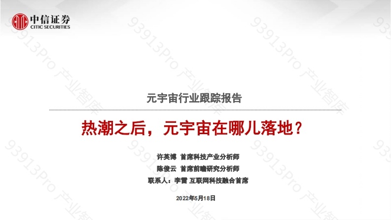 首页产业报告元宇宙宇宙行业跟踪报告:热潮之后,元宇宙在哪儿落地?