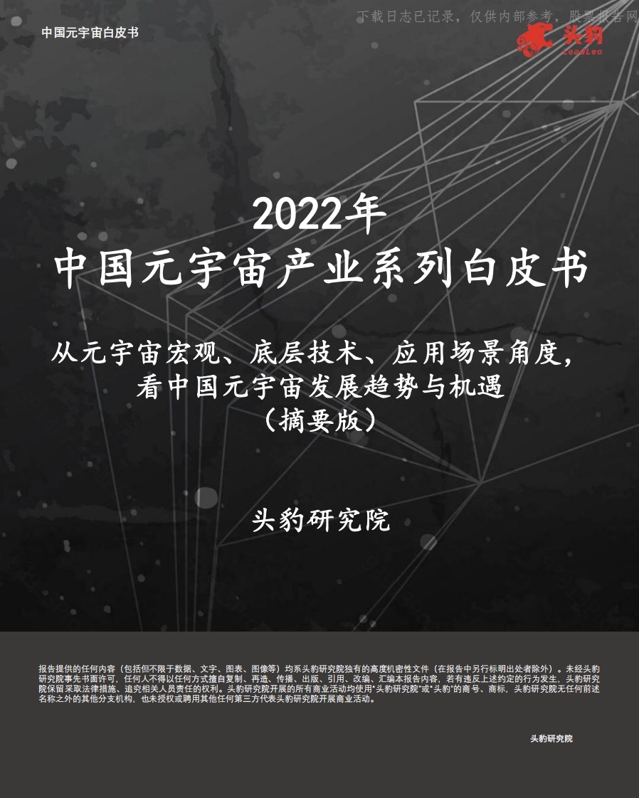 元宇宙行业2022年中国元宇宙产业系列白皮书:从元宇宙宏观、底层技术、应用场景角度,看中国元宇宙发展趋势与机遇(摘要版)